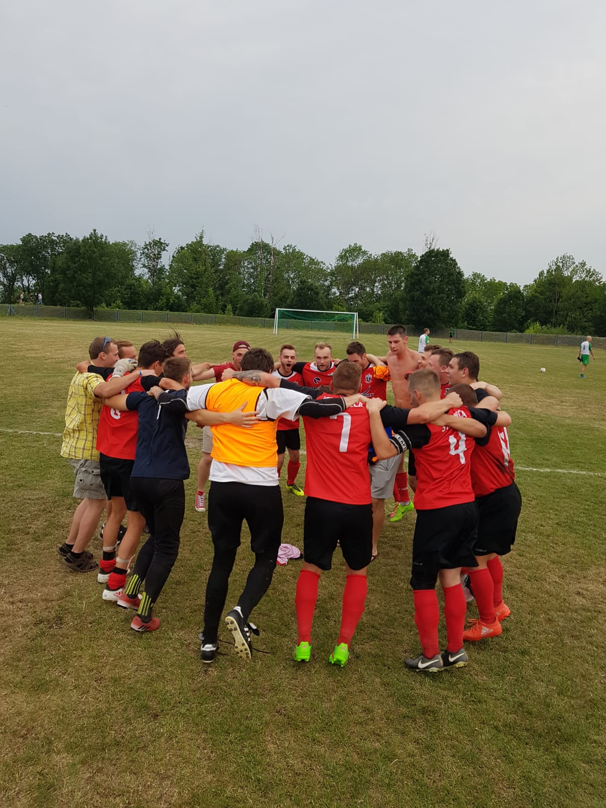 Pierwsza połowa spotkania w wykonaniu naszej drużyny była bardzo słaba i to gospodarze schodzili na przerwę prowadząc 1:0. Jednak kilka "ciepłych" słów w szatni pobudziło nasz zespół, który w drugiej połowie mocno zaatakował i odwrócił losy spotkania strzelając 5 bramek.